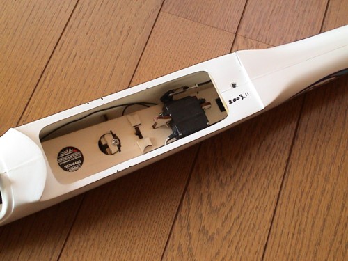 受信機と、スイッチングアンプは、メカプレートの下です。 |