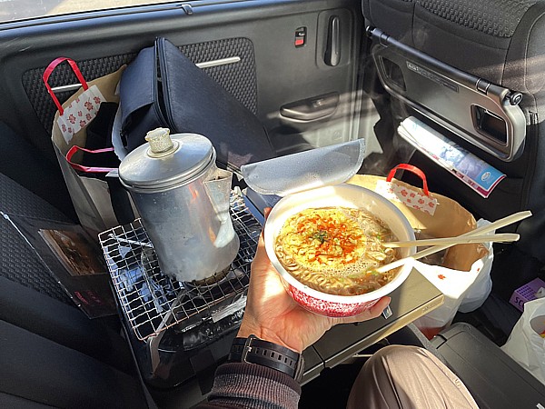 お昼は、車内で年越しそば!