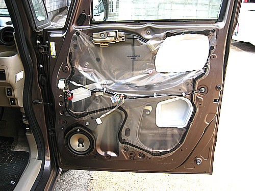 ↓ 純正スピーカーを外して、まずはデッドニングします。NBOXの純正スピーカーは、