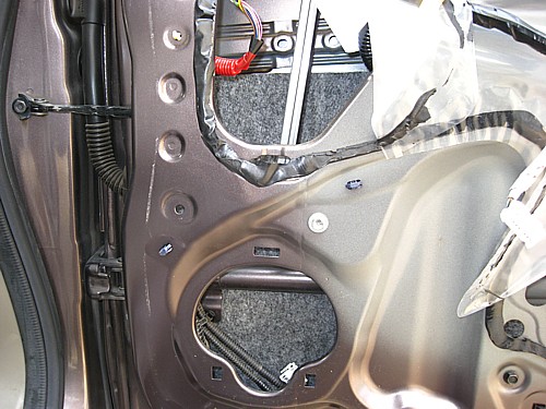 ↓ デッドニングが完了したら、加工しておいた取り付けブラケットを付けます。