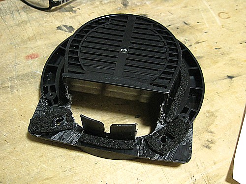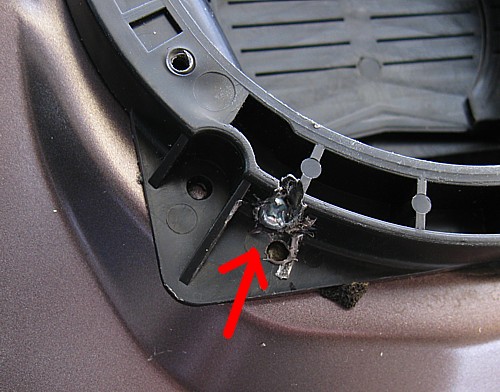 ↓ ネジ穴の位置が、ちょうどリブの部分で、苦労して かなり強引に付けました。