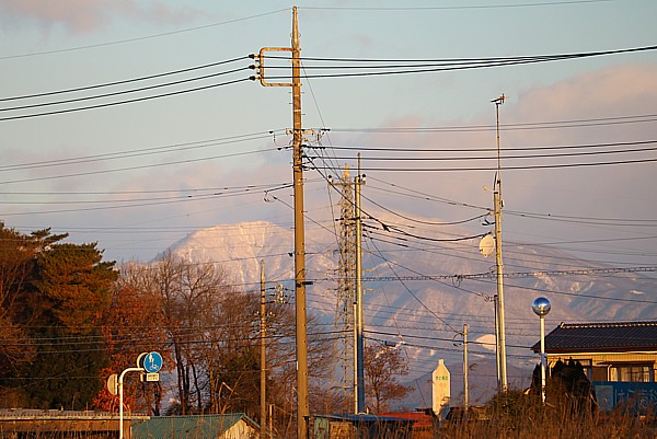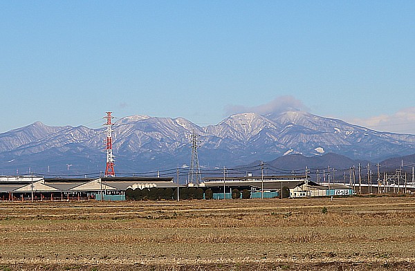北の山を見ると昨日の冬型気圧配置による大雪で、